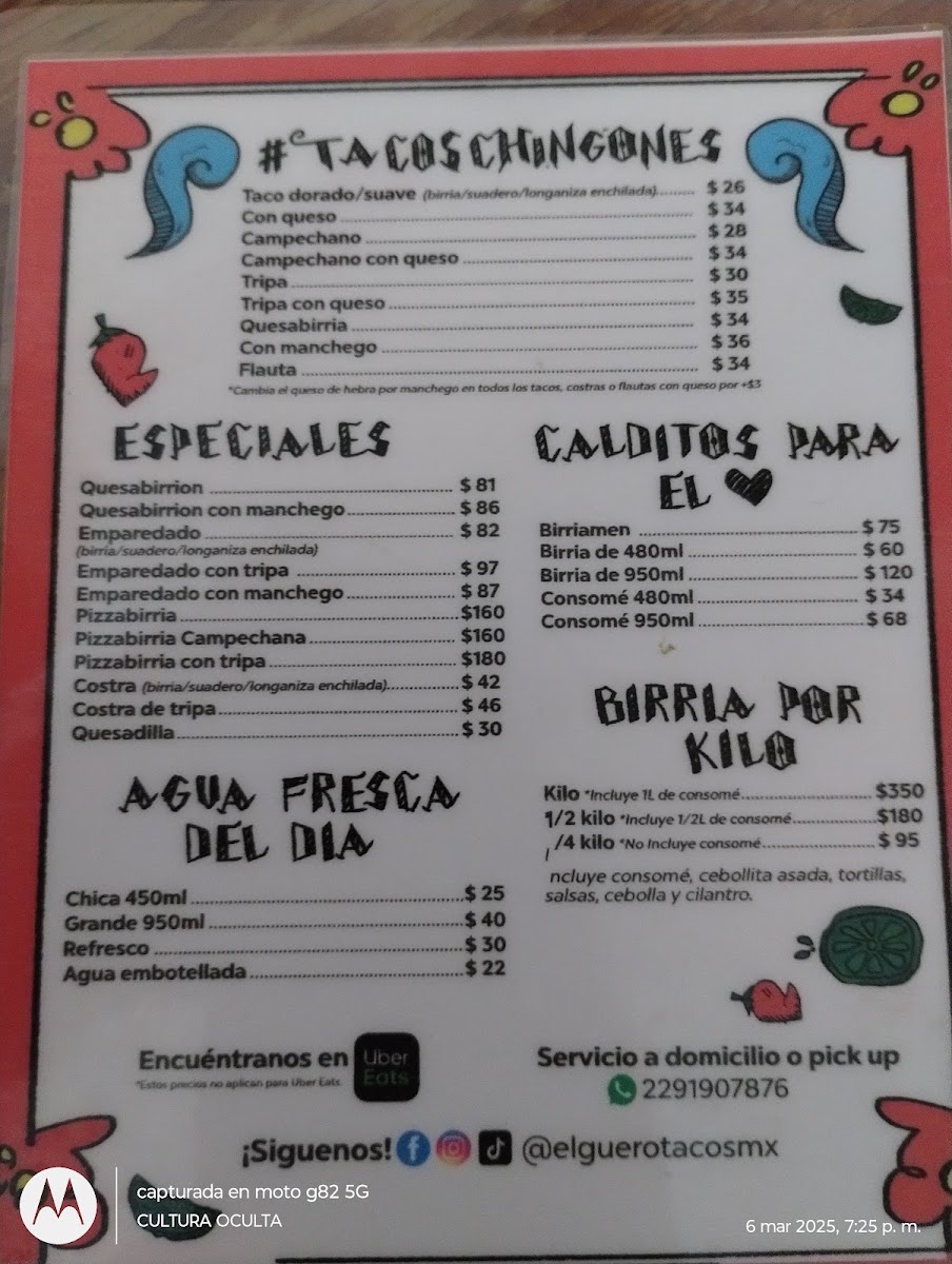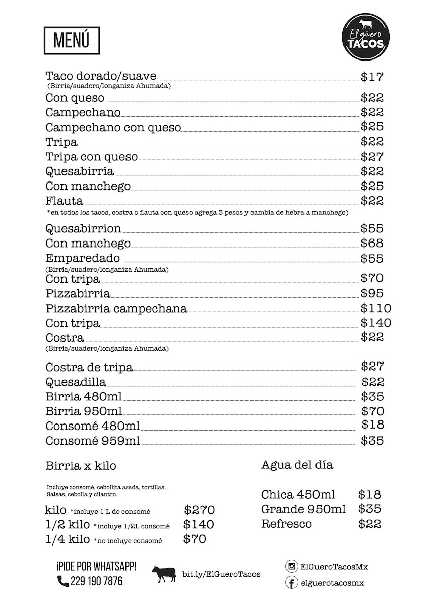 Welcome to El Güero Tacos, a taco haven located in Tamsa, Veracruz. Specializing in an array of mouthwatering beef tacos, this spot is a love letter to taco enthusiasts. Their menu features tantalizing options like the heavenly quesabirria, a favorite among locals, and the satisfying suadero tacos, all paired perfectly with onions, cilantro, and your choice of salsa for just MX$17.00-22.00.